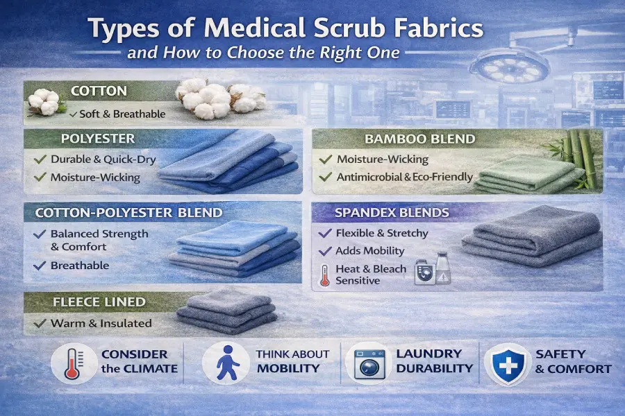 Choosing the right fabric for medical scrubs is crucial for healthcare businesses. The fabric affects how long the scrubs last, how comfortable the staff feel, and even costs. High-quality scrubs handle washing well and keep their color. Bad fabric leads to more replacements and staff dissatisfaction. This guide skims through standard fabrics, their strengths, costs, and recommendations for different facilities. It helps hospitals, clinics, and private practices make wise choices that ensure comfort and last long.